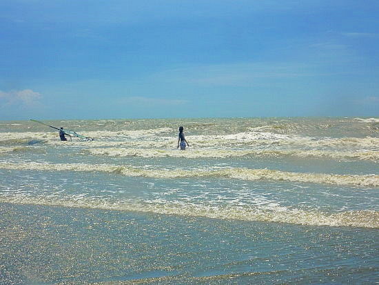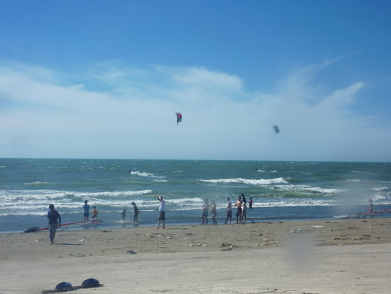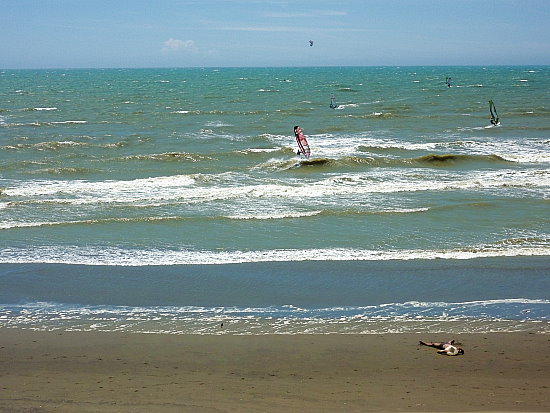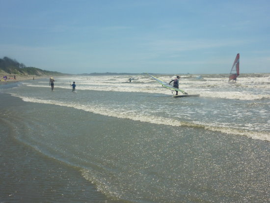有不少人在玩風浪版,聽說這裡的浪較小較平,順順的到岸邊,