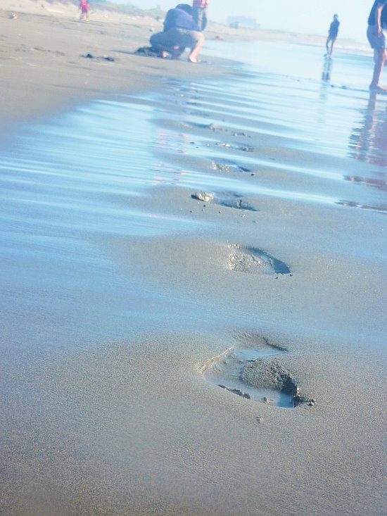 在濕軟的海灘留下足跡 (不過一會兒就會被浪衝掉 xd)