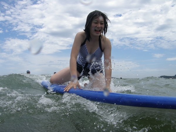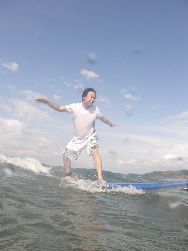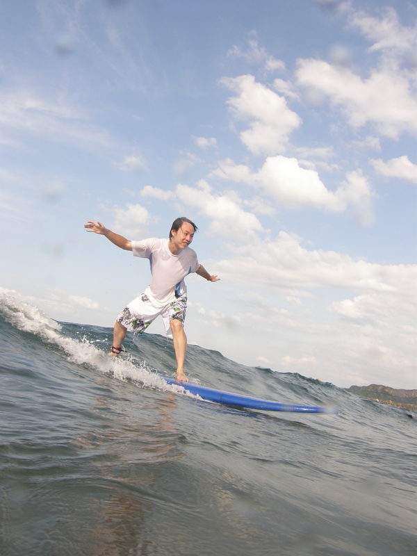 如果沒有教練的幫助,要自己看浪、追浪,對我來說還是十分困難,